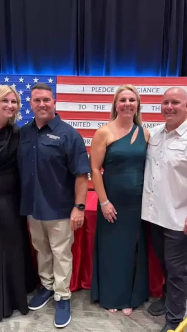 Custom display case honoring Chief Corey Comperatore presented by Brotherhood Designs to Helen Comperatore at Coreyβs Cruise Memorial on 7/12/25.