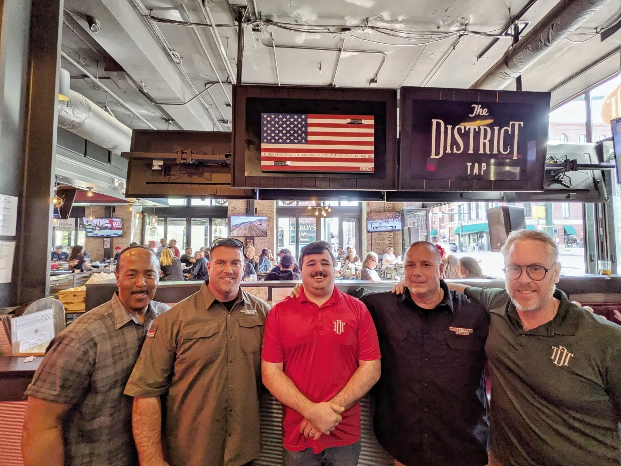Flag #130 marks another meaningful milestone for Brotherhood Designs—a Squad Series Retired Fire Hose American Flag proudly delivered to our Title Sponsor, The District Tap Downtown Indianapolis.